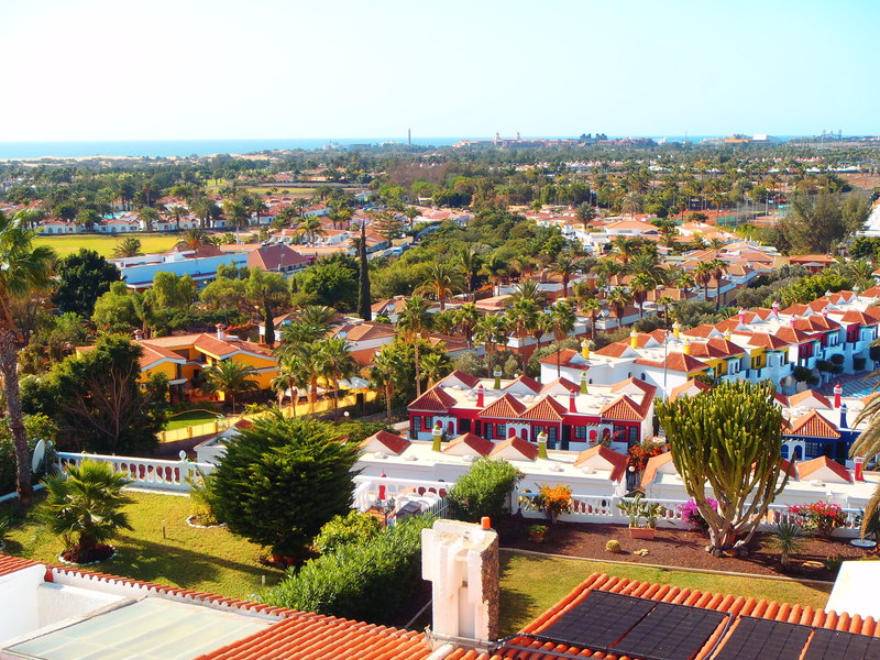 Ein Blick auf den bungalow-domierten touristischen Teil von Maspalomas.